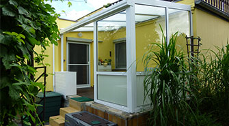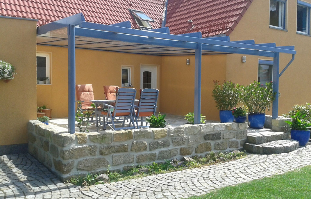 Mit unseren Dächern verschönern Sie nicht nur Ihre Terrasse. Es lässt sich ebenso Ihr Eingangsbereich oder zum Beispiel eine Kellertreppe schützen.